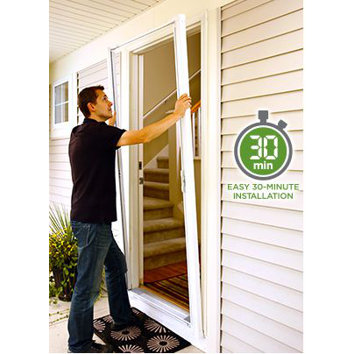 The patio screen installs on the exterior of a existing patio door allowing the patio door to be open without letting insects into your home.